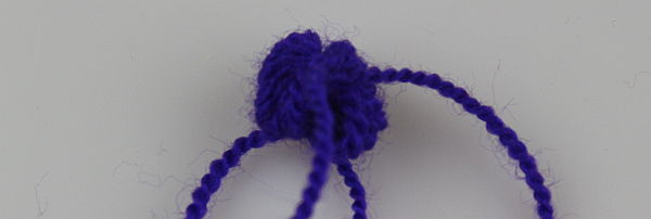 - Nimm beide Fadenenden zur Hand und verknote sie miteinander. Dabei musst Du darauf achten, dass die einzelnen Wollkügelchen richtig platziert werden. So ergibt sich ein kleines Blümchen.
