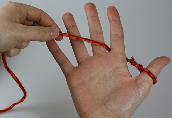 Stülpe den Faden über die Fingerspitze des kleinen Fadens.
