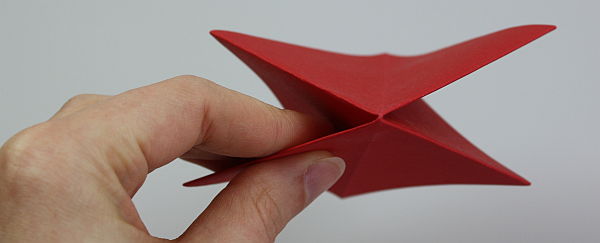 - Von der Seite her gesehen sieht Deine Faltarbeit nun so aus: